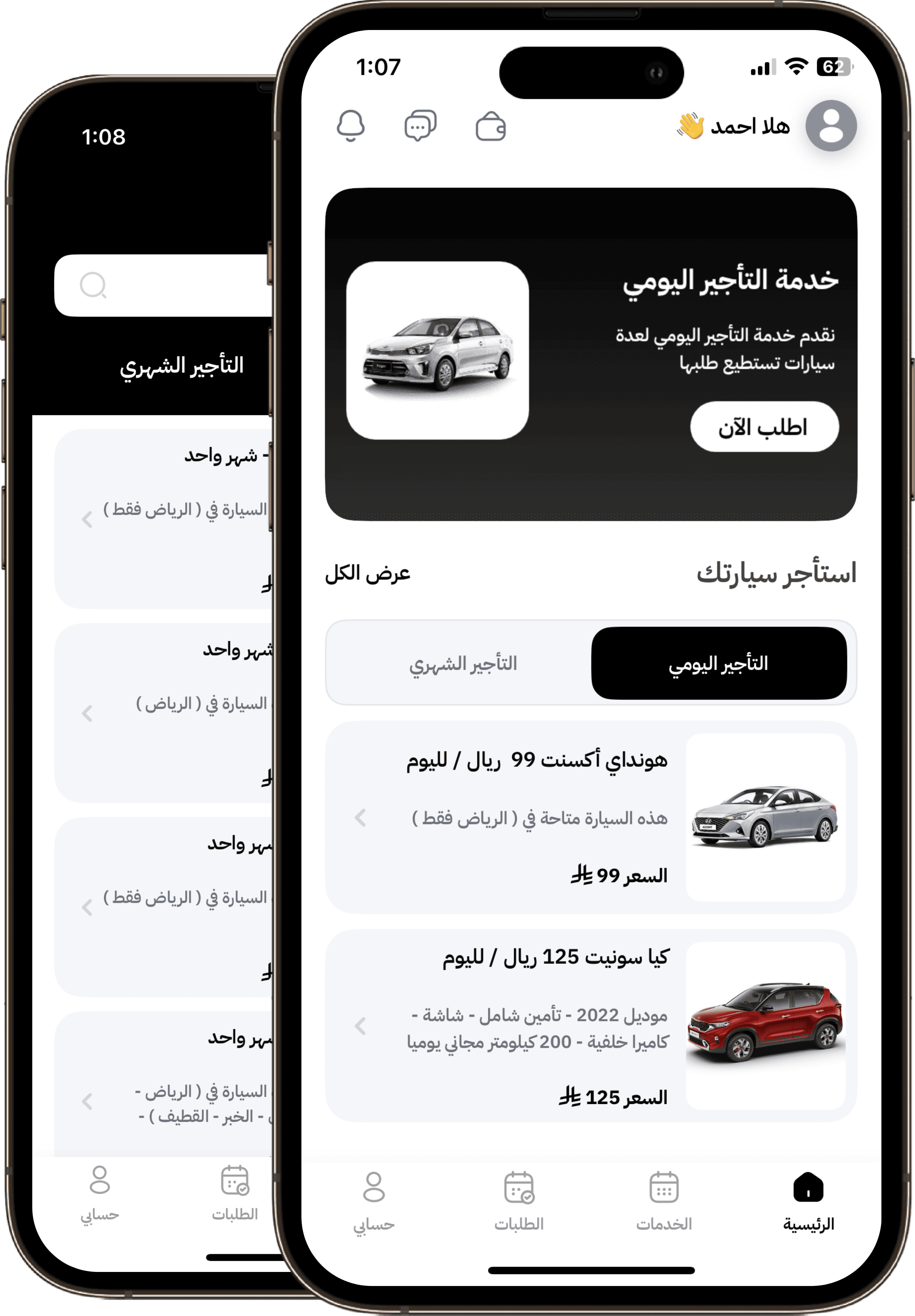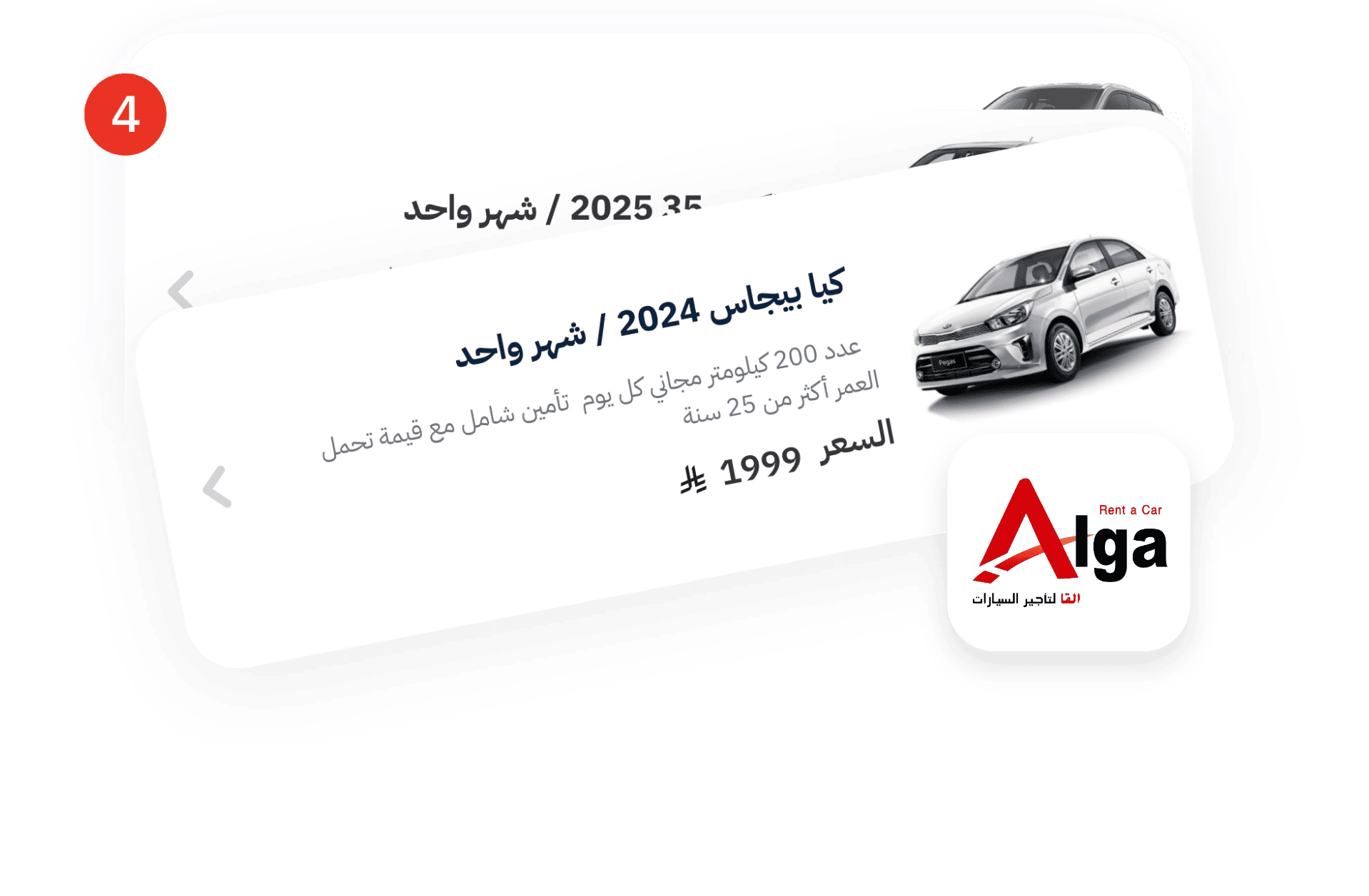 نوفر لك مجموعة متنوعة من السيارات بأسعار تنافسية وخيارات تأجير مرنة يومية وشهرية، مع إمكانية الدفع الإلكتروني والتوصيل إلى موقعك. تجربة تأجير مبتكرة تناسب احتياجاتك بكل سهولة وأمان !